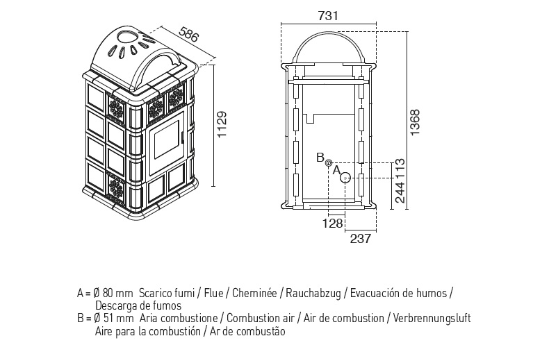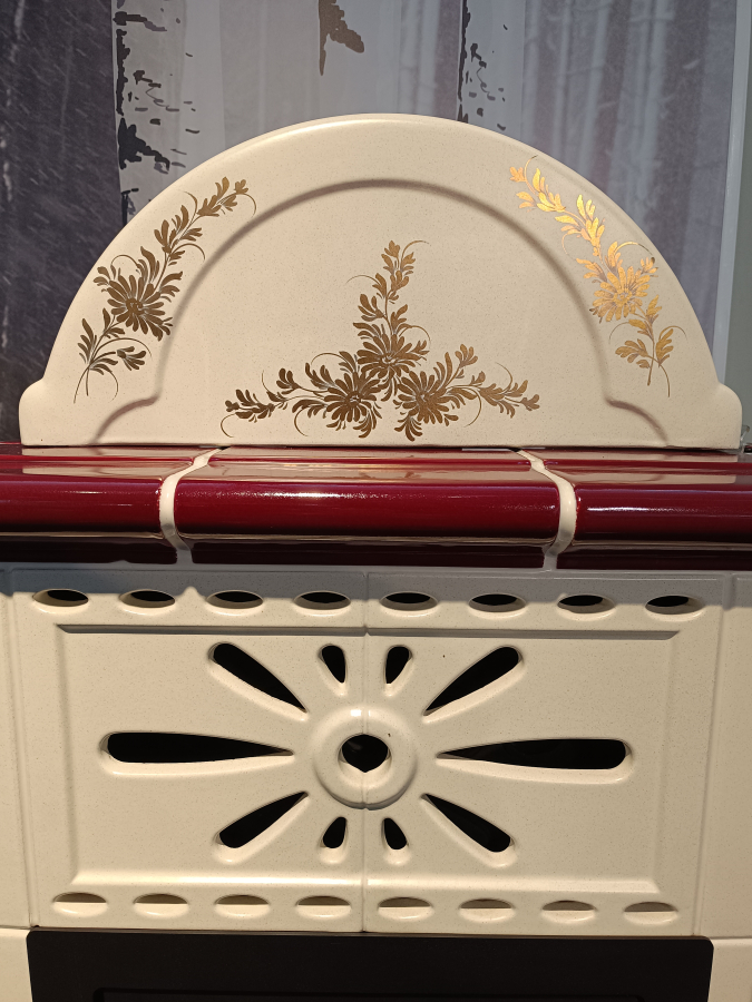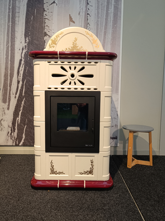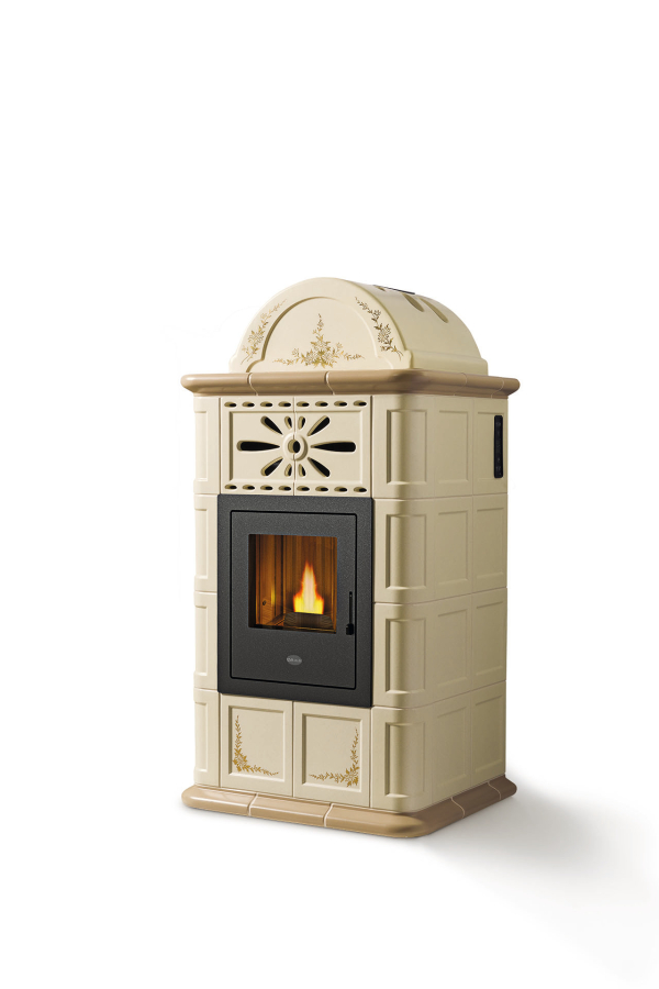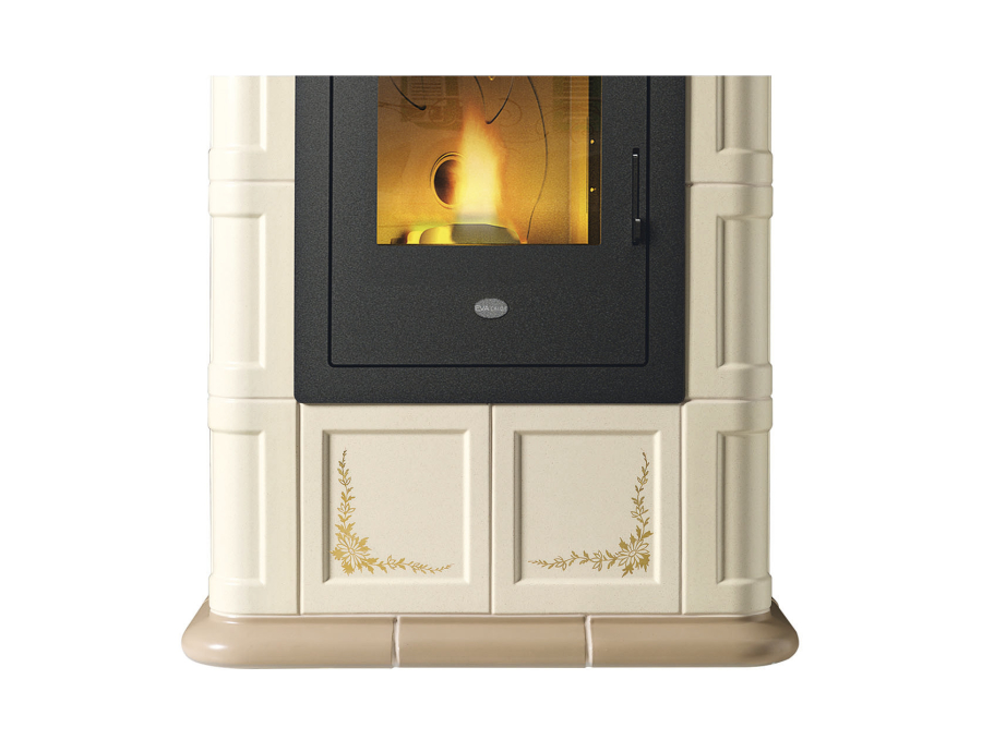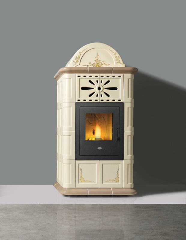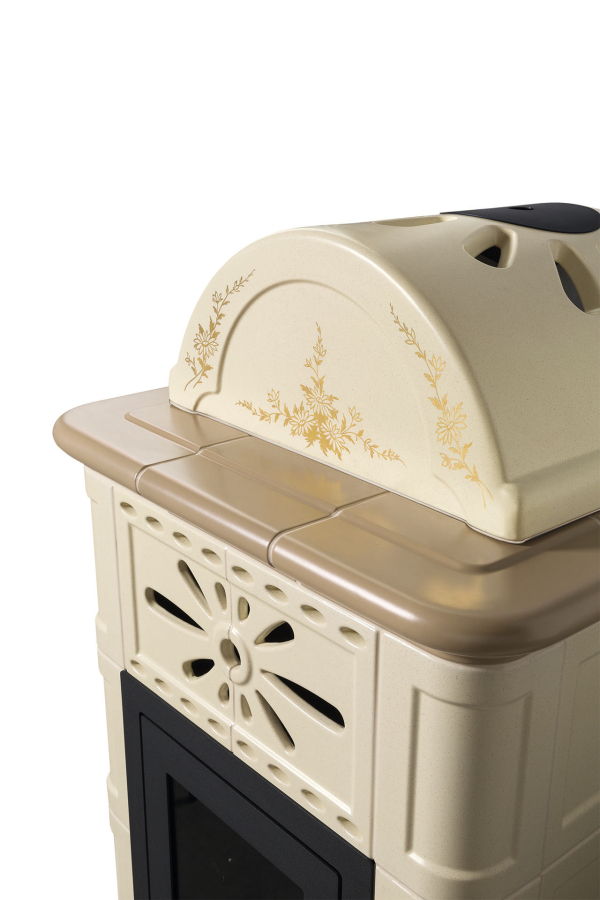 Diana a majolika vonal legszofisztikáltabb darabja. A domborított fedele krémszínű, mint a kályha többi része, és megnöveli a kapacitását a pellet tartálynak. Kézzel készített 24 karátos arany dekoráció teszi a kályhát igazán egyedivé.