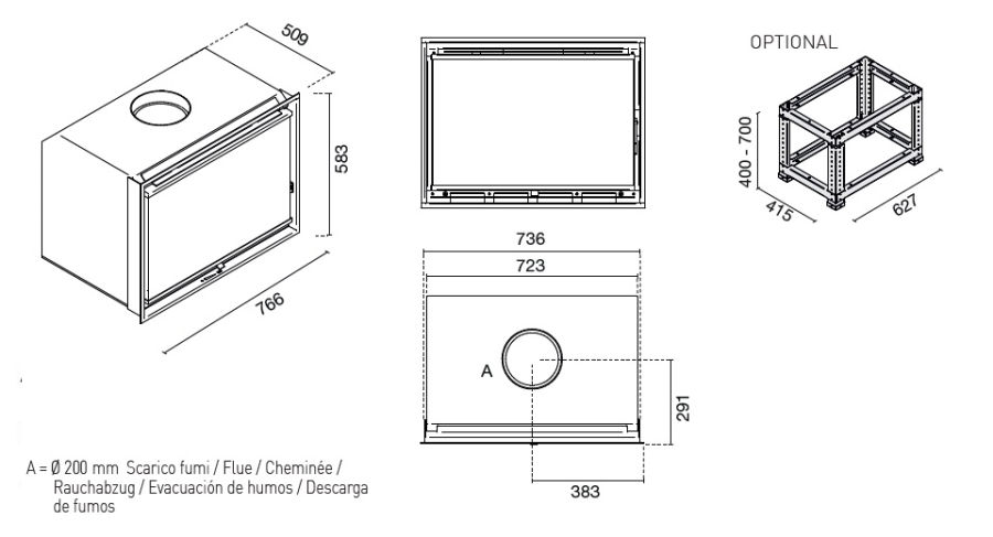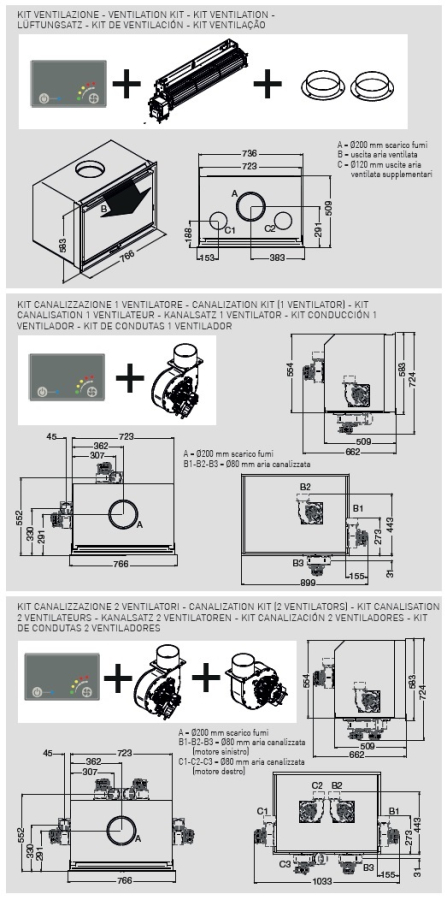 CSATORNÁZÁS KÉSZLET (1 ventilátor): 1 centrifugális ventilátor, a gép hátsó vagy alsó részébe szerelhető, külső modulról vezérelhető 5 sebességgel, amely segítségével légcsatornázható lesz a kályha és más helységeket is befűthet vele.