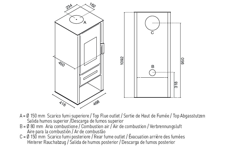 Az Eva Calòr által kifejlesztett égési folyamat lehetővé teszi, hogy a lehető legtöbbet hozza ki a fa fűtő erejéből, miközben minimalizálja a mérgező kibocsátást. Az elvezetési módnak köszönhetően a felmelegített oxigén kétszer jut be az égéstérbe, így kétszer sikerül újragyújtania a fa égetésekor keletkező szén-monoxiddal terhelt füstöt. Ez optimalizálja a hőtermelést, miközben minimalizálja a károsanyag-kibocsátást és a fogyasztást.